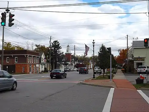 Clarence's main street is, appropriately enough, Main Street. Also known as NY 5, Main Street runs in a roughly east-to-west direction at the southern edge of the town, passing through the suburban neighborhood of Harris Hill and the quaint business district of Clarence Hollow.