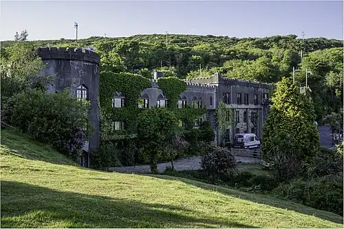 - π Clifden Castle is a picturesque ruined mansion in Gothic Revival style. It was the home of John D'Arcy (1785β1839), who founded Clifden, but his successors went bankrupt during the great potato famine. The next owners were absentees then the estate suffered land raids; in the 20th century the place fell derelict. You can stroll up the lane from Sky Road but the building is unsafe to enter. It's inhabited by cows, who have made themselves comfortable, so you could reasonably call it "Clifden Cattle".