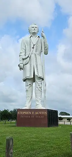 - 🌍 Stephen F. Austin-Munson Historical County Park, 41885 State Hwy 288, Angleton, ☏ +1 979-849-5965. W-Su 8am-5pm. Where you can see a gargantuan-size statue of Stephen F Austin holding a scroll and also a "lake" in the shape of the state of Texas.