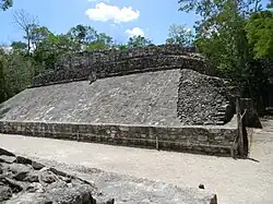 The site consists of a large complex of ruins, only a small portion of which have been cleared from the jungle and restored by archaeologists. The Nohuch Mul pyramid is 42 m (138 feet) high, and is the tallest Mayan structure in the Yucatan. There are several other buildings of interest including several temples, an ancient gallery of carved stellae, an astronomical observatory, and at least two ball courts.