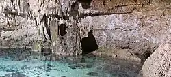 Three cenotes are located about 3 km from the archaelogical site. Stop and take a swim in the underground pools for a refreshing Mayan way to cool off. Each cenote charges a nominal entrance fee of M$130 (September 2025). Rest rooms and changing areas are provided. Showers are required before swimming in the cenotes. The three cenotes are: