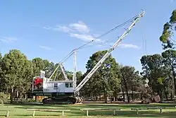 Bucyrus Class 3 Dragline.The Dragline excavator in Lions ParkLocated in the Lions Park at the entrance to town. It is one of four machines imported from the USA in 1935 and used to excavate the main channels in the Murray Valley and the Coleambally Irrigation area. They were 'walked' to Coleambally from Deliniquin following completion of the Mulawa canal and commenced work in the district in 1958. In 1978 the machine was driven to its present site and it is still in working condition.