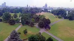 - Parks: Cologne has two park areas (Grüngürtel) encircling the city (immediately outside the medieval city limits) and nearly the entire town, respectively, which were set aside as public recreation areas after World War I. The inner Grüngürtel is probably more easy to reach for tourists who only stay a few days. Most notably are Volksgarten, Rheinpark, Hiroshima-Nagasaki- (colloquially known as Aachener-Weiher-) and Stadtgarten parks where thousands of people come together to enjoy the sun, play and barbecue when the weather is fine. All these parks have an associated beer garden. Dispose any packaging, charcoal, etc., into the waste bins (which are few and far between), as the city has begun to employ anti-littering patrols that will levy a stiff fine on anyone seen littering. Metro: Eifelplatz for Volksgarten, Universitätsstraße for Hiroshima-Nagasaki-Park, Hans-Böckler-Platz/Bahnhof West for Stadtgarten, Bahnhof Deutz for Rheinpark.