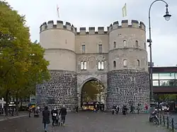 - Agnesviertel – Here, most notably in the bohemian Agnesviertel, you can find independent designers, bookshops, bars, and art galleries. There are also historical monuments, such as the North City Gate or Eigelsteintorburg in the Agnesviertel, very near to Fort X, built to protect the city from French attacks, and Agneskirche, a late neo-gothic church on the boulevardesque Neusserstraße. Neusserstraße also has a yoga school, an Aikido school, a Japanese restaurant, a well-stocked bookshop, and a range of pubs. Nearby you will find the Alte Feuerwache, where there are regular exhibitions on political topics and a surreal flea market every four weeks in summer. Opposite Alte Feuerwache is the Artclub, with regular exhibitions of contemporary art, and on Ebertplatz there is a cinema (Metropolis) which shows films in the original (mostly English, but sometimes also French or Spanish). On nearby Lübecker Straße, you will find the uncompromisingly Arty Filmpalette cinema. To round off a trip to the Agnesviertel, you might like a kölsch in the Lapidarium (right beside the North City Gate) or a coffee in Cafe Schmitz, Cologne's grooviest poser hangout (they also do a great breakfast.) All of these great places are within a short walk of Ebertplatz U-Bahn.