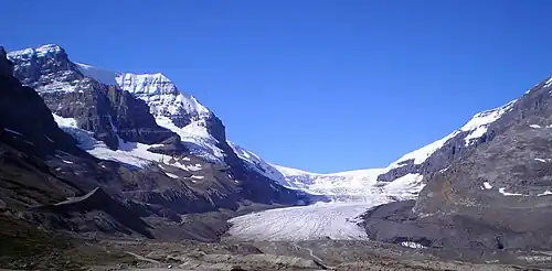 - Saskatchewan Glacier - at the bottom of the big hill and the big bend in the highway south of the Centre, it is possible to find a hiking trail that crosses the North Saskatchewan River and makes its way to the valley that contains the Saskatchewan Glacier. A moderate day hike will take you to the toe of that glacier and back to the road.