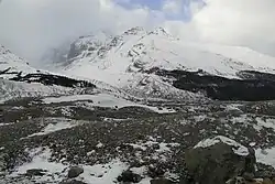 Much of the landscape here is pretty bleak. You're either looking at snow and ice or rocky rubble uncovered by the receding glacier. Impressive mountains rise up almost from the highway.