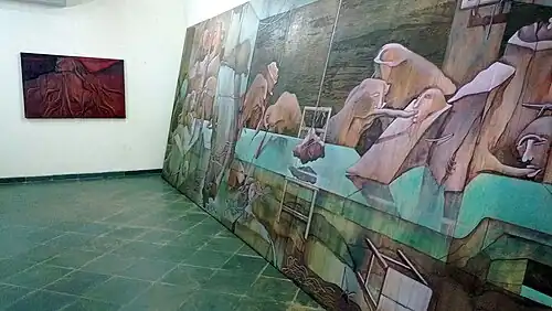 Carlos Colombino (1937-2013) was one of Paraguay's most preeminent painters and a driving force in the nation's cultural scene. Colombino pioneered a technique known as xilopintura, engraving and sculpting thin sheets of wood to create large panels with an otherworldly quality. His work consistently denounced the Stroessner regime with pieces such as "El Torturado" (the tortured one), "El General a Cuerda" (the wind-up general) and a series simply named "Paraguay". Colombino helped found several of the museums in the country including the Museo del Barro in Asunción. Museo del Mueble Paraguayo in Areguá, and the Museo de Arte Contemporáneo in Concepción and lent his expertise to numerous cultural institutions. His works are on display at the Museo del Barro in Asunción and in art galleries throughout the country and he is featured in Esperanza, a documentary about art under the Stroessner dictatorship.
