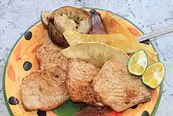 - poke (cooked fruit pudding) (banana, pawpaw) with coconut milk.