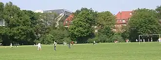 - 🌍 Fælledparken (Trianglen and Vibenhus Runddel metro stations are in opposite ends of the park.). Fæleldparken is the big park behind the football stadium, the largest in Copenhagen. There is a lake, big trees and a pavilion with a cafe which hosts concerts during the summer, the outfit Salsa Brava also gives Salsa lessons in the park during the summer. Most of it is covered with grass, much of it marked as football fields. Go there for a game of football or another game, a picnic, or just lie in the grass. At May 1st, during the International Workers day, most of Copenhagen's population comes here in a peculiar mix of a political rally, and a seriously huge party.