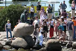 - 🌍 Den lille Havfrue (The Little Mermaid Statue), Langelinie. This little lady is one of the most photographed in the world. Designed by Edvard Eriksen, Her statue was erected in 1913 to commemorate a play of the Little mermaid. The poor lady has lost her head several times, and is often subject to vandalism connected with political statements. Many visitors are often surprised by her modest size (1.25 m (3.3 ft) high). The Little Mermaid is a semi official symbol of Copenhagen.