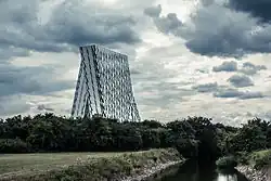 - 🌍 AC Hotel Bella Sky Copenhagen, Center Boulevard 5, ☏ +45 32 47 30 00. The Bella Sky towers soar over the Bella Centret conference venue, and so do room prices there whenever an event is held. Unlike most AC Hotels, it was not purpose-built as such, and thus features some really unusual and quirky design traits, like wildly placed trapezoid windows. The hotel's unusual architecture was driven by the desire to provide the best views, even if those are mostly of Orestad and Amager rather than Copenhagen.