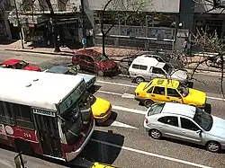 Yellow taxis and green remises, similar to taxis but with a different fare system, are a comfortable way of getting around, with prices starting from around $3000ARS (2024) for a 15-block ride. Under the rules, yellow taxis may be hailed for pick up on the street but green remises are dedicated to pickup up from a particular location after receiving a telephone request. But these rules are loose and you may often successfully hail a green remis on the street. Taxi drivers are very sensitive about their cars. When exiting please close the door slowly, and remember to try and keep your feet planted to the ground. Also, there are no seatbelts in most taxis. Generally speaking, taxis and remises are safe; but it may be even safer to call a taxi or remis by phone in some situations, e.g. when travelling to the airport.