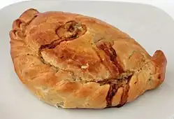 - Cornish Pasty. A semi-circular pocket of soft or flakey pastry, usually filled with meat, turnip, onion and potatoes with a crimped crust to hold whilst munching. Traditionally, the pasty was held by the crust due to the miner's dirty hands and then discarded to avoid ingesting poisonous materials such as lead.