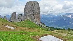 - π Cinque Torri (in the Nuvolau mountain group). The "five towers" is a fine group of extraordinarily shaped mountain stumps in a more or less straight line so that from a distance they may be thought to resemble a row of towers. It's frequented by alpinists and climbers thanks to many climbing routes of different difficulty levels. A chair lift makes this superb viewpoint accessible to anybody, though only climbers can enjoy some of the attractions. Right beside the Cinque Torre, some World War 1 trenches, shelters and gun positions have been well restored and you can walk around these safely, reliving those times with the help of information boards which carry photographs, explanatory text and maps.