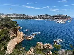 The Costa Brava (Rugged Coast) is a coastal region in Catalonia, in the northeast of Spain. It has rocky cliffs and a mix of pebble beaches and sandy beaches.