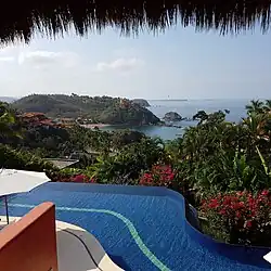 - 🌍 Las Alamandas, Carretera Puerto Vallarta - Manzanillo Km 82, ☏ +52 322 205 8054. Check-in: 15:00, check-out: 12:00. Small, private, luxury resort with 16 suites situated on a rocky coastal area. Gardens, swimming pools, riding stable. M$10,000.