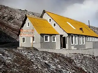 - 🌍 Refugio José E. Rivas, ☏ +593 32233129. The hut is located about half way up Cotopaxi from surrounding elevation and provides temporary and overnight housing for those planning to summit Cotopaxi. Meals are provided and guides are required. Visitors who climb to the hut from the parking lot for a short visit can also find water and snacks here. Dorm $30 with dinner and breakfast included. Hot chocolate $2 and lunch $12..
