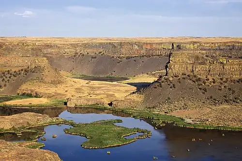 - 🌍 Sun Lakes-Dry Falls State Park (7 miles SW of Coulee City). At the foot of Dry "Falls. Offers camping and lakefront shoreline. During the last ice age, Dry Falls occasionally carried more water by volume than all the rivers of the world combined (known as the Missoula Flood).