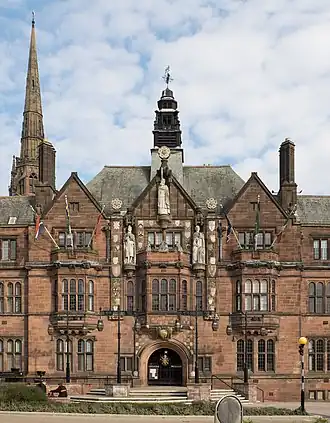 - 🌍 Coventry City Council Building, Earl St, CV1 5RR, ☏ +44 808 583 4333. Grade II listed with statues.