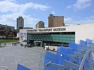 - 🌍 Coventry Transport Museum, Millenium Place, Hales Street, ☏ +44 24 7623-4270. 10AM-5PM (last admission 4:30PM). A museum hosting the largest collection of British road transport in the world with over 230 cars and commercial vehicles, 250 cycles and 90 motorcycles. Closed 24–26 December and 1 January. Adult £14, concession £10.50, junior (5 to 16 years) £7, special prices for families, free for Coventry residents.