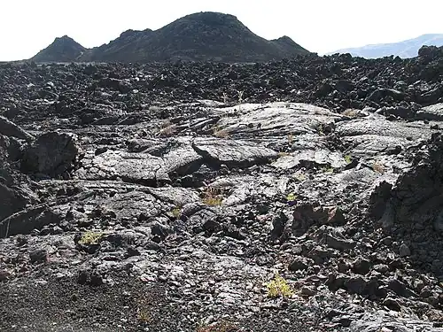 Craters of the Moon National Monument and Preserve is a United States national monument in the Snake River Plain of Central Idaho. The park was created to protect a vast landscape of lava flows with scattered islands of cinder cones and sagebrush. Starting 15,000 years ago, the landscape was created by molten lava flows. While the park's landscape varies tremendously from the celestial body after which it was named, it was nevertheless visited in 1969 by Apollo 14 astronauts Alan Shepard, Edgar Mitchell, Joe Engle and Eugene Cernan who explored the lava landscape in order to learn the basics of volcanic geology in preparation for future trips to the moon.