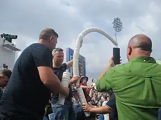 "Feed the snake:" cricket stadiums serve beer in disposable pint mugs. It's consumed in copious amounts and the etiquette with your empties is to stack them neatly along with those of your neighbours, and their neighbours and so on. As play draws to a close the Beer Snake of empties acquires a life of its own, wriggling and writhing across the stands. It's truly the noble progeny of the Hindu Nāga, the Rainbow Snake of Aboriginal Dreaming, and serpentine cricket-watching deities throughout the cosmos.