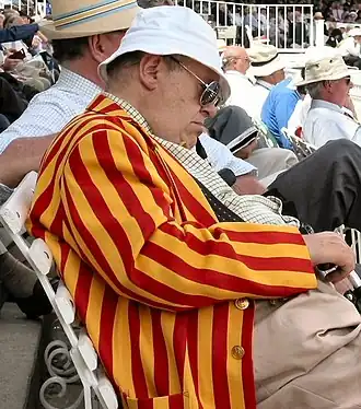 Rival fans mingle amiably inside and outside the stadium, and applaud good play even by the opponents. Dress for comfort and bear in mind that it's a long day out there with changeable weather. Use sun protection even on dull days: a lot of UV gets through the clouds and wear a raincoat or carry an umbrella if it rains. Both cricket teams wear white and team colours are only worn for short formats, so the fans seldom wear these. A conspicuous minority adopt fancy dress, so you might see a dozen lads all got up as Spiderman or as crocodiles or whatever. The most distinctive tribe is the MCC membership at Lords in their garish "egg & bacon" blazers and similar complexions.