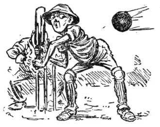 - "Caught behind" or "caught at the wicket" is a catch by the wicket-keeper immediately behind the wicket — usually because of a little snick by a batsman unsure whether to hit or leave alone a ball.