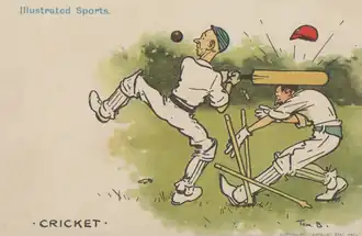 - "Hit wicket" or "chopped on" is a variant where the batsman's own stroke results in his bat or any part of his body hitting the wicket.