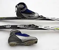 The bindings are often made such that most boots will fit, although boots intended for this use should normally be used. Other boots will have less good a fit and wear down quickly. These bindings are wide and do not necessarily fit well in machine made tracks.