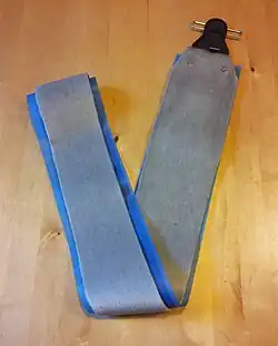Skis for skiing in exposed terrain with steep hillsides, such as above the tree line, are a compromise between telemark downhill skis and normal backwood skis (as were the original telemark skis). Telemark skis are often used as fell (mountain) skis. Fell skis are heavier and more rigid than crosscountry track skis to allow sideways control. The bindings allow good control over the skis and sharp metal edges get a grip also in hard snow. The skis are often quite wide (but some are less than 65 mm) to give to good float in powder snow. Skis are curved to ease turning. The skis are of about traditional length or shorter to allow easy handling. "Skins" (originally stripes of seal skin or similar) are used to give good grip in the snow going uphill and removed when not needed, to get better glide. They are typically attached to the skis via a loop on the ski tip, a hook on the tail, and adhesive on the base of the skin.