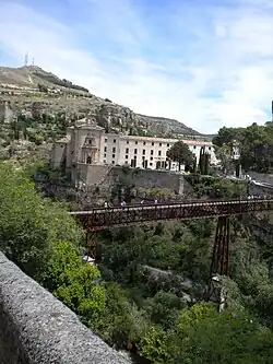 - 🌍 Parador de Cuenca, Paseo del Huecar, ☏ +34 969 232320. single €128-138, double €160-175, breakfast €18, menue €33-45 (2013).