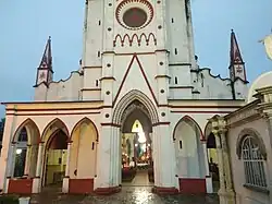 - π Iglesia De Los Jarritos (Santuario de Guadalupe), Aldama, Centro. Striking neo-gothic church that gets its name from the small jugs that decorate it. The church tower seems unusually tall for an otherwise narrow church. You enter the church through its cemetery. Because the town is often socked in by fog, it's a place you can get some spectacularly eerie photos.