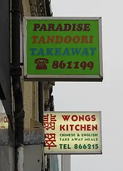 Fish and chip shops are one of the more common takeaways. Usually these have a selection of two or three types of fried fish and a variety of generally cheaper fried alternatives, such as chicken, smoked sausage, cod roe or battered black pudding. On Friday and Saturday nights, chippies can get busy around 11PM with people buying chips on the way home from the pub. Indian, Chinese and pizza takeaways are also common, but quality can vary greatly - ask locally or look for queues.