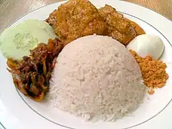 • Nasi katok is often considered to be the unofficial national dish of Brunei. It consists of plain rice with a piece of fried chicken and sambal chilli sauce.