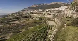 The Mágina Mountains form an isolated massif that is part of the inland pre-Baetic system. Rising to the south of the Baetic range, they are surrounded by lower peaks that shape the transition from the Guadalquivir valley and the inland pre-Baetic Mágina Mountains to the intermediate domains of areas such as the smaller Serrezuela de Bedmar range. Olive groves reach from the northern plains down to the northern face of the Mágina Mountains, following the courses of the Albanchez stream and the Bedmar River. They scale the mountainsides and traverse the rock formations that form the peaks of the hills and down the sides of the gaps to make use of almost all the arable land. The towns of Torres and Albanchez de Mágina are located in the connection between the slopes and the peaks, where the rock allows the construction of defences that, thanks to the commanding view over the northern side of the mountains, were strategically placed to watch over the border with the Nasrid Kingdom. Thus, the most striking features of this cultural landscape today are its defensive role and the perpetuation of an economic system based on intensive farming of the environment, today a wide expanse of olive trees.