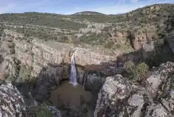 The canyon gouged out by the Quiebrajano River to the south of the city of Jaén makes its way through a land with mountains and sheer rock faces until it reaches the reservoir of the same name. It forms a natural pass between the Jaén and Pago de las Cimbras Mountains to the west and the Propios Mountains, to the east. The canyon plunges to depths of 200 m and its sheer sides are covered in caves and caverns. The uneven escarpments form vertical, narrow landscapes in which the grey and green of the pines dominate; the maritime pines stand out on the rocky slopes although holm oaks and Mediterranean shrub are studded around the exposed sides and high plateaux.