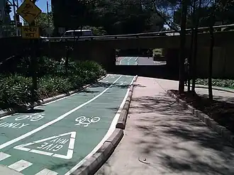 Unlike many other cities, cycling on some of Sydney's freeways is completely normal, though riding your bike on the freeway should be done at your own risk. Often, this is only allowed on urban freeways with a wide shoulder. If there's an alternate cycle path that runs parallel to the freeway, then you likely won't be able to ride your bike. You cannot ride your bike under a tunnel (many of Sydney's freeways are underground, so this is a large number), nor can you ride your bike on the lane – you must ride it on the shoulder. Important freeways that are not tunnels where cycling is prohibited include the M4 Western Motorway west of Silverwater (you can only ride on the bike freeway between Pemulwuy and Silverwater), the A4 Western Distributor, the Gore Hill Freeway, the Warringah Freeway, the Eastern Distributor and the M5 East Freeway (the above-ground sections too).