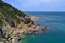 The southeastern rocky end of Dénia is known as Les Rotes. If you like diving or just snorkeling this stretch is more interesting, where you can see all kinds of Mediterranean fishes, squids, octopuses, sea urchins, etc. 🌍 El Trampolí, 🌍 La Punta Negra, and 🌍 La Cala (near the cliffs), are very popular with divers; a prior permit, available from the tourist office, is required. 🌍 Platja de la Marineta Cassiana has disabled access and a boardwalk, is and easy stroll from the centre of Dénia.
