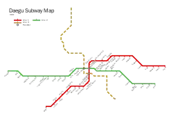 Daegu has three subway metro lines. The first two lines intersect at the main downtown stop of Banwoldang.
