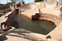 Like the other western oases, the climate is hot desert, 40°C and above summer and 5–10°C in winter. There is zero rainfall and all the oasis supply is "fossil water" extracted from the aquifer, a non-renewable resource.