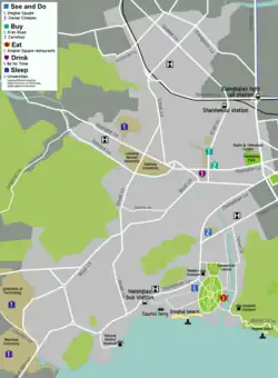 Shahekou District (沙河口区 shāhékǒu qū) is a mostly residential district to the south and east of the center of Dalian. The district's residential nature means the number of attractions are limited, with the area around Xinghai Square the most likely to draw visitors. Hotels are equally limited, though the large number of universities in the district means that those on a budget may well find themselves sleeping here.