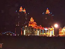 - 🌍 The Castle Hotel (大连一方城堡豪华精选酒店), 600 West Binhai Rd (沙河口区滨海西路600号) (To the east of Xinghai Square), ☏ +86 411 8656 0000. Known as The Castle among Dalian residents, this one may be a good choice for travellers who want a luxury experience. It is the first castle hotel in China and also somehow a landmark of Dalian. The hotel self-branded itself as a "6-star hotel" but it actually received a 5-star branding. Designed as a luxury hotel, the service is worth the price. However, it is on a hill - walking up the hill may be a little tiring. From ¥1000 to ¥1610.