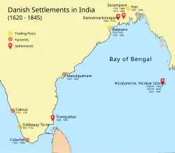 The next major colony that Denmark possessed was in 1620, when it held the Indian city of Tranquebar (now Tharangambadi). For the most part, it was "just there", quietly sitting until it eventually was sold to the British in 1845, becoming a part of the British Raj.