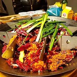 • 🌍 Jiawei Rabbit Hotpot (佳味兔火锅), No. 9, Gongnong South Alley, Defu Street, East Side of Pacific Shopping Center(德福街工农南巷9号太平洋购物中心东侧). 09:00-22:00. In Dazu, rabbit hotpot is a renowned local delicacy, celebrated alongside the famous You Ting Crucian Carp as a must-try dish in the region. This traditional hotpot is famous for its rich, spicy broth that perfectly complements the tender rabbit meat, creating a flavor explosion in every bite. The dish is typically served with fresh vegetables, tofu, and noodles, which soak up the delicious broth and elevate the overall dining experience. For a different twist, diners can also choose to have the rabbit cooked two ways—either in the hotpot or as a dry, stir-fried dish with a crispy exterior and juicy meat inside, offering a unique and delightful texture contrast. OSM directions