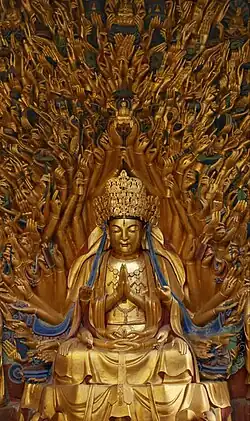 • 🌍 Shengshou Temple (圣寿寺) (just to the right of the Baodingshan Rock Carvings Site). 09:00-18:00. Shengshou Temple, part of the Dazu Rock Carvings complex, was constructed in the Southern Song Dynasty and serves as the religious center of the Baoding Mountain carvings. It is known for its detailed carvings that blend Buddhist, Confucian, and Taoist elements, reflecting the unique cultural integration of the period. The temple’s sculptures, such as the Thousand-Hand Guanyin, showcase exceptional craftsmanship and artistry.This location allows visitors to express their wishes or prayers according to local traditions. You are welcome to make a wish here if desired. OSM directions