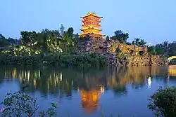 • 🌍 Xiangguo Park (香国公园), Approximately 180 meters south of the intersection of Qingmingqiao Road and Fodu Avenue(清明桥路与佛都大道交叉路口往南约180米). 24 hr. Xiangguo Park is a city park that blends natural landscapes with cultural elements, featuring scenic views and blooming flowers throughout the year, making it an ideal place for leisurely walks and relaxation. The park’s ancient-style architecture and cultural sculptures showcase a strong artistic presence, allowing visitors to immerse themselves in history and culture while exploring. The park offers a variety of recreational facilities, such as children's play areas and fitness trails, making it a great choice for family outings and outdoor activities. There are also tranquil tea pavilions and observation decks where visitors can fully enjoy the beauty and tranquility of the surroundings. Whether for connecting with nature or experiencing local culture, Xiangguo Park is a must-visit destination. OSM directions