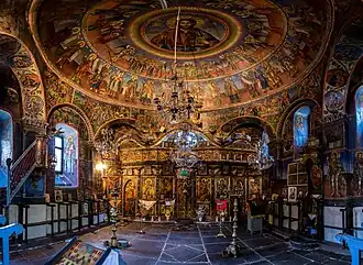 - 🌍 Church of the Assumption (Црква „Успение на Пресвета Богородица“) (village of Gari). Built during the "renaissance" era of Macedonian churches in the 18th century, the Church of the Assumption has particularly rich fresco paintings done by noted artist Dičo Zograf. The iconostasis was done by another famous artist, Petre Filipovski-Garkata, and his brothers, natives of Gari. The rectangular-shaped church is mostly built of stone and has a side porch.