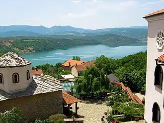 - 🌍 Rajčica Monastery (Рајчки манастир). The convent counterpart to the Monastery of St John Bigorski in Mavrovo. Established in the 14th century, it is above Lake Debar 2 km (1.2 mi) from Debar. The main church at the monastery, dedicated to St George, was built in 1852. The convent was in rough shape until 1999 when it was restored and cooperation was established with a convent in Boston. A chapel was added to the grounds in 2006.