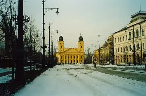 - 🌍 Great Church (Reformed Great Church, Nagytemplom), Kossuth tér (in city centre close to Kálvin tér shopping centre), ☏ +36 52 412694, fax: +36 52 412694, nagytemplom@info.hu. M-F 09:00-16:00, Sa 09:00-13:00, Sunday: after church service till 16:00. During services and official programmes the church is closed. Debrecen's most recognizable building and a symbol of the city. It is the centrepiece of what was once called "Calvanist Rome". Visitors can tour the interior, as well as go up in the tower to see the Rákóczi bell, the largest bell in Hungary, and excellent views of the city. Tickets: Adult/Reduced Ft 400/300.